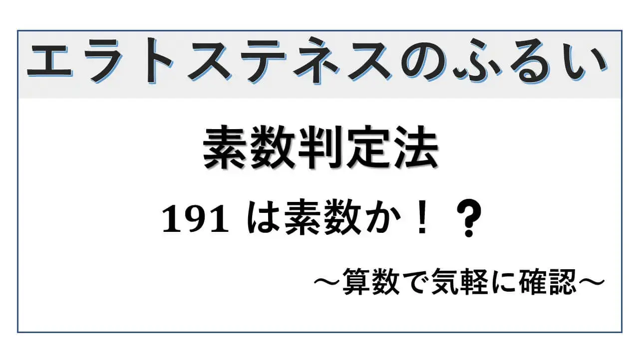 試験中に少しの労力で人力で行える内容のレベルとして、3ケタくらいの自然数について判断できるようになれば幸いです。
