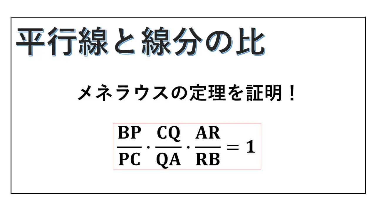 高校の平面図形の単元で学習するメネラウスの定理を、平行線と線分の比の観点から証明します。