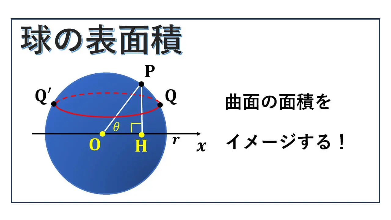 弧PQ が rdθ で、PP’ = 2πr・cosθ という曲面の面積をどう定義するのかということが重要になります。