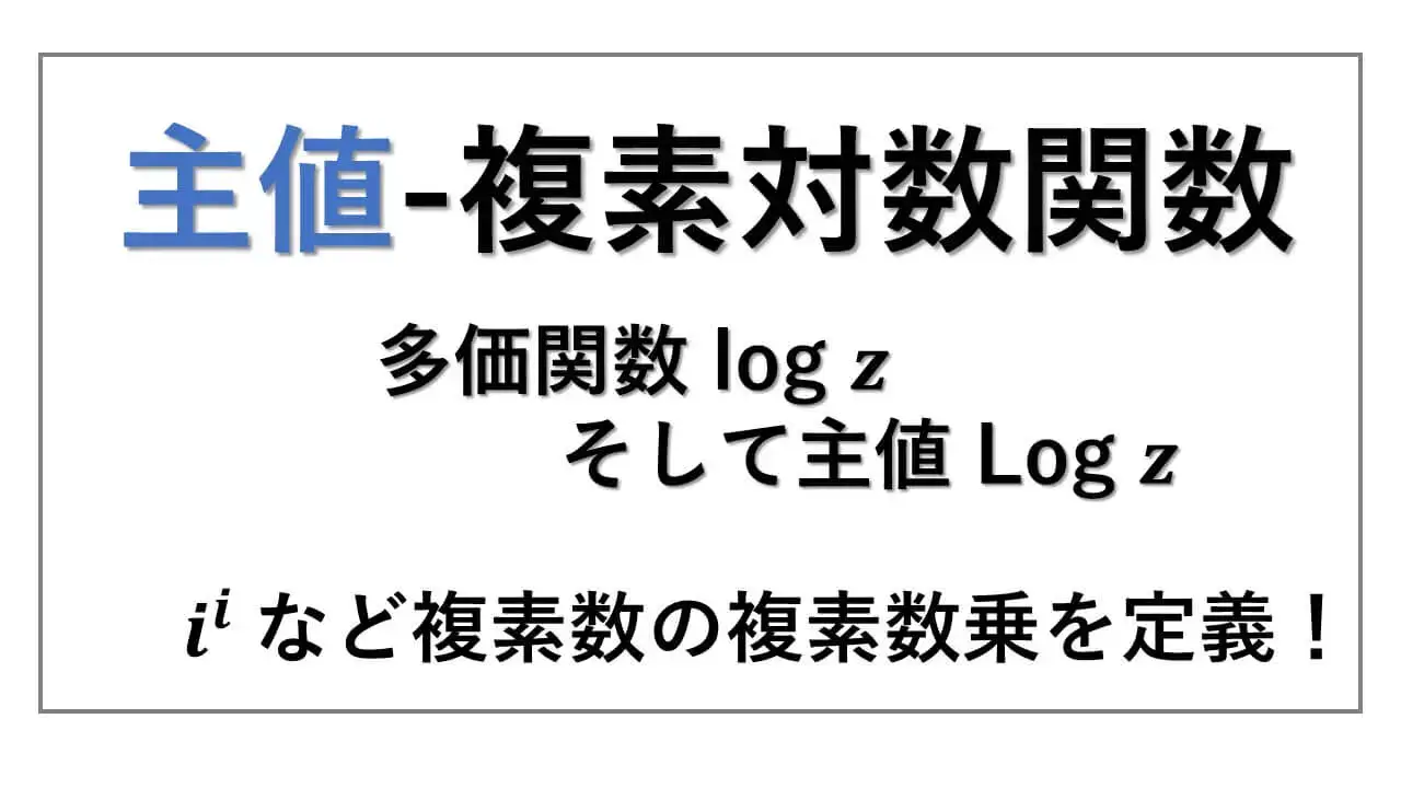 " 主値 “を考えるのは、複素対数関数で多価関数が用いられるからです。定義域の各元に対して、1 つの値を対応させるのが関数(写像)です。