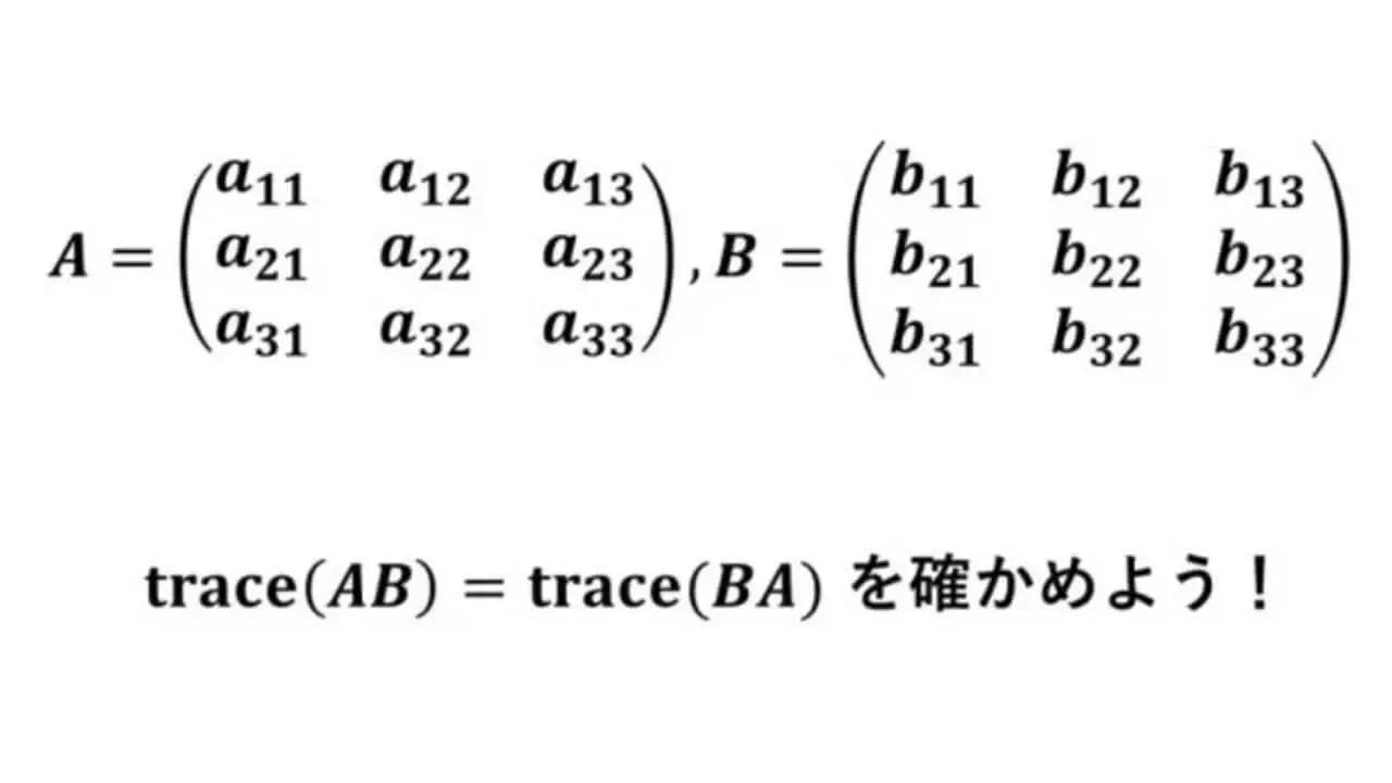 この記事で、trace(AB) = trace(BA) となることを証明します。